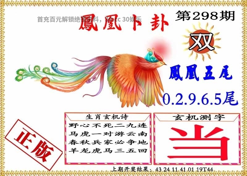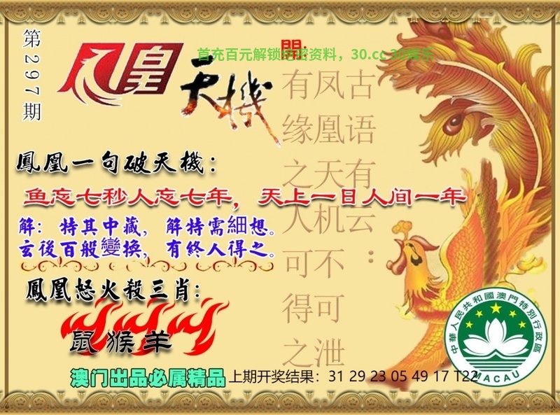 | 297期 双波中特 ♠红绿♠ 开:狗44准 |